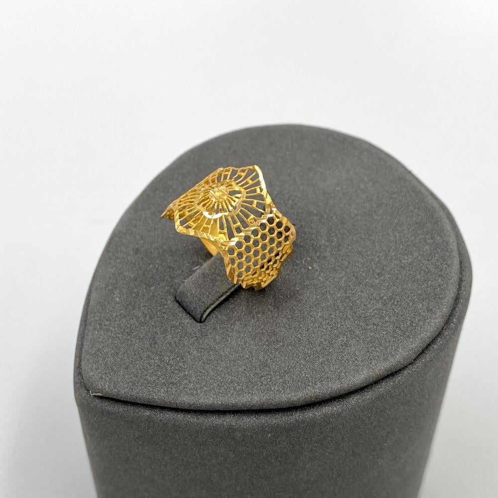 استمتعي بتصميم أنيق وفريد مع هذا الخاتم المميز من الذهب عيار 21 بوزن 1.9 جرام. يتميز بتصميم مفرغ دقيق يشبه شكل الشمس، يضفي عليه لمسة من الإبداع والأصالة. يُعد هذا الخاتم الخيار المثالي لكل من يبحث عن قطعة مميزة تعكس الأناقة والبساطة في آن واحد.