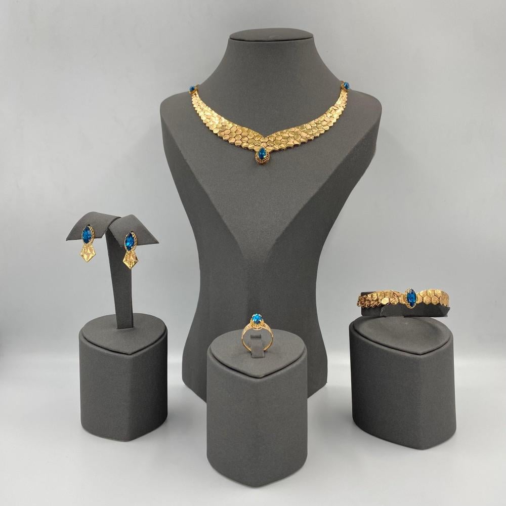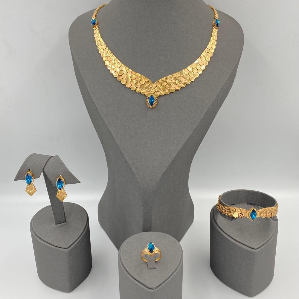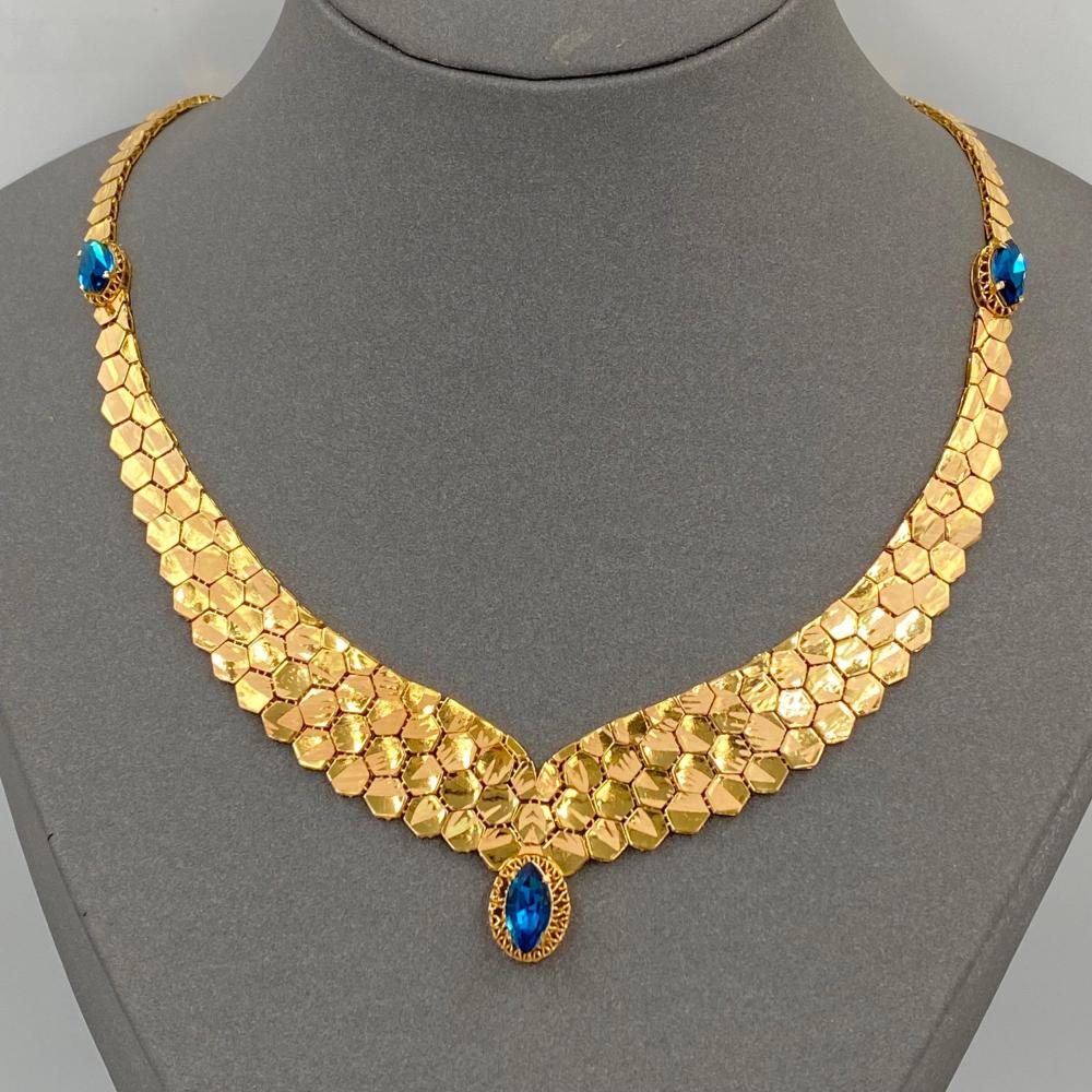 اكتشفي جمال طقم ذهب الصقر عيار 21 تصميم جناح صقر الوزن 39.9 جرام، المصمم ليمنحك مظهرًا راقيًا وجذابًا. مع وزن 39.9 جرام، يبرز جمال الذهب الحقيقي.