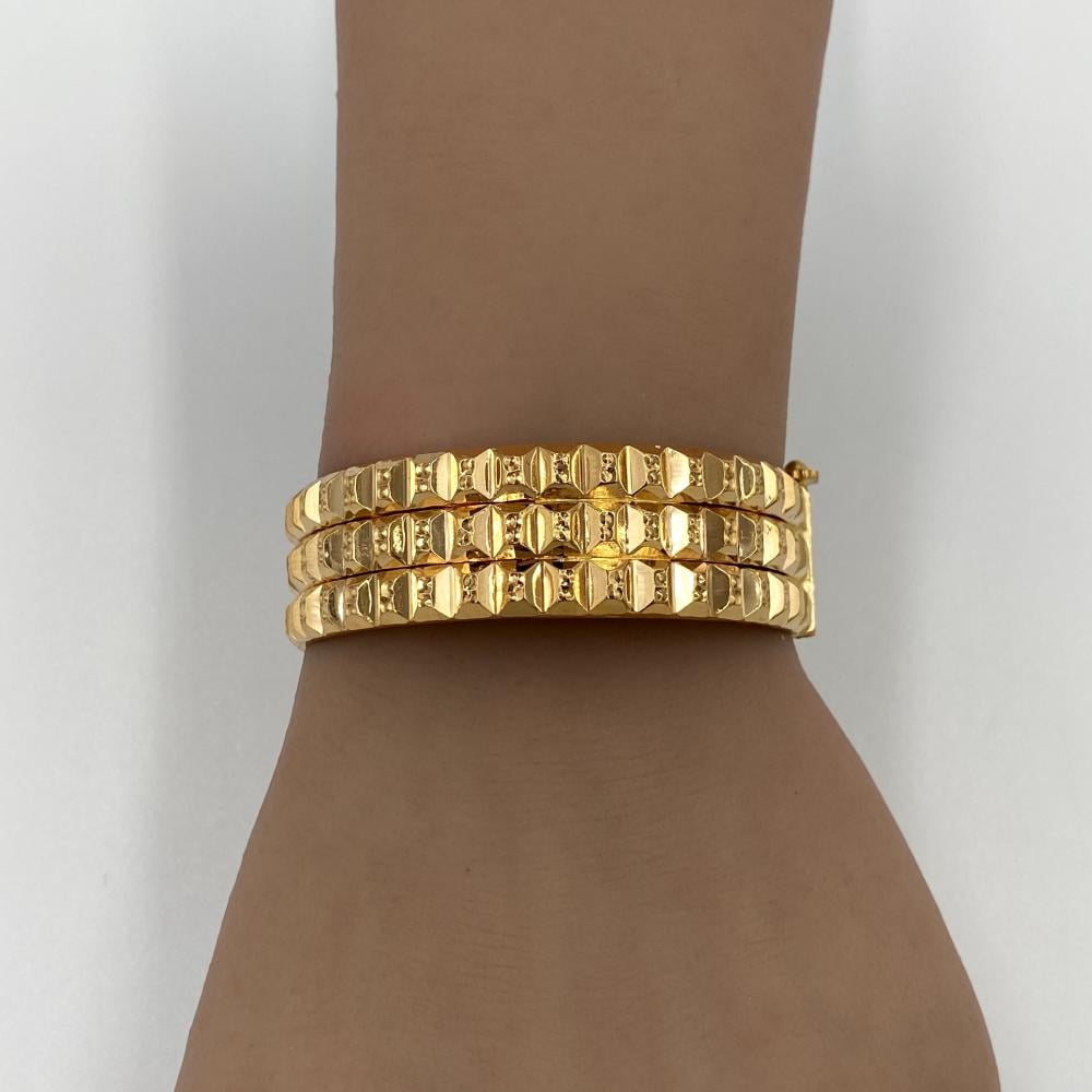 تمتعي بجمال اسوارة ذهب عيار 21 ثلاثة دور الذي يأتي بوزن 27.4 جرام لإضفاء الفخامة والأنوثة على إطلالتك. صنع بعناية فائقة ليجمع بين الراحة والجمال. اختاري هذه القطعة لإضفاء المزيد من الجمال والرقي إلى مظهرك.