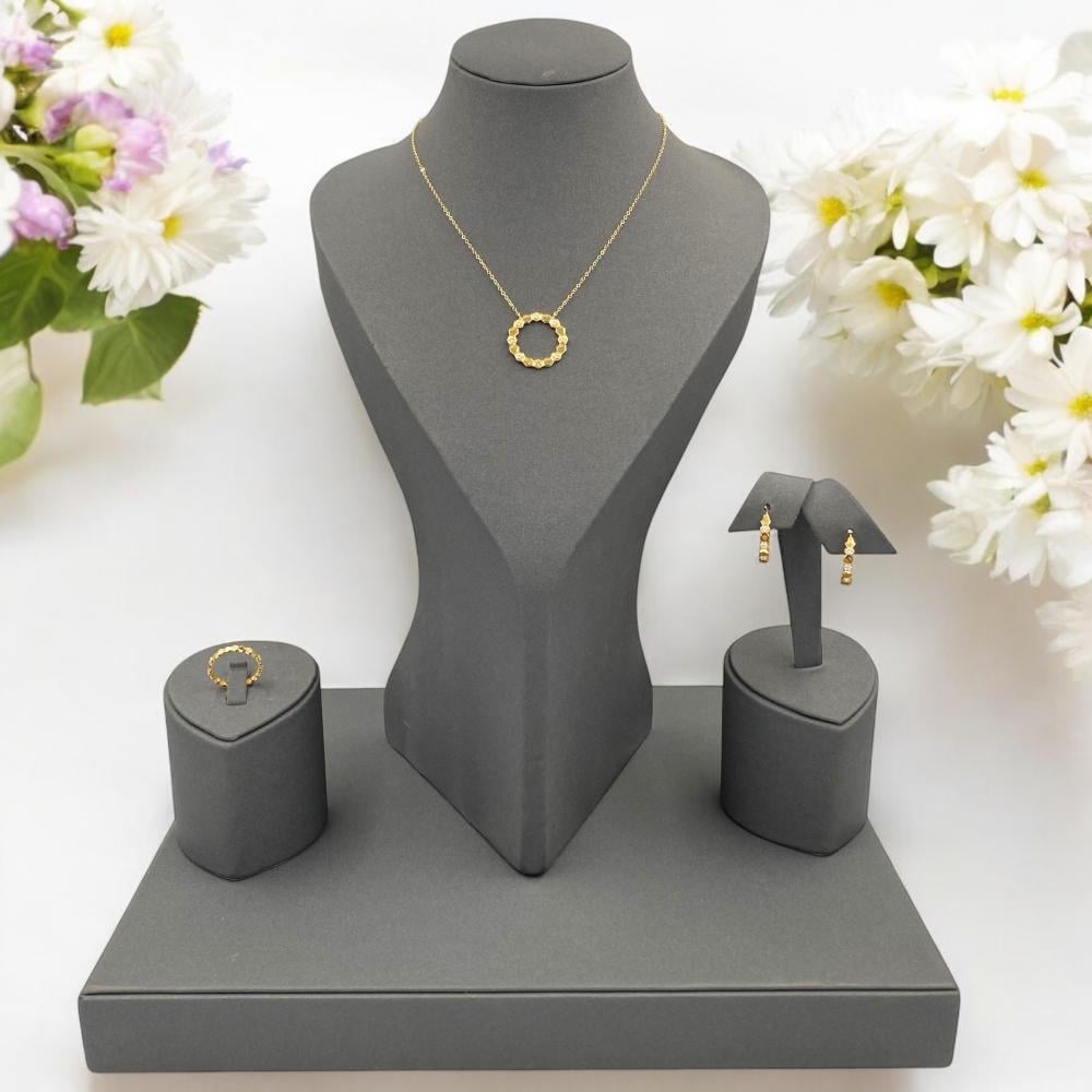 تميزي مع نصف طقم ذهب شوميه ذهب عيار 21 الوزن 8.4 جرام المصنوع بعناية ليضيف لمسة من الفخامة لإطلالتك. بوزنه 8.4 جرام، هو الخيار المثالي للمناسبات اليومية والخاصة.