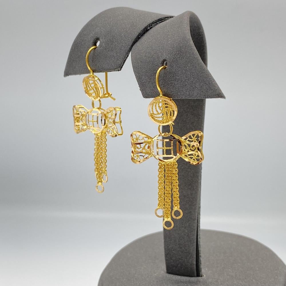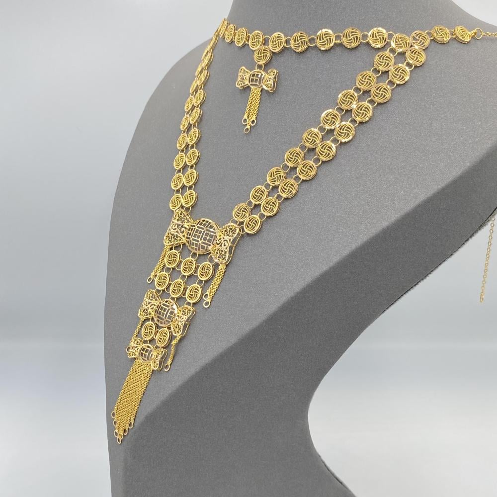 طقم ذهب عيار 21 تصميم فيونكه الهدايا الفريد، بوزن 33.8 جرام، سيجعل إطلالتك أكثر جاذبية وتميزًا. يتميز بتصميم عصري يناسب جميع الأوقات والمناسبات. إضافة رائعة لإطلالتك لتكوني الأجمل في كل وقت.